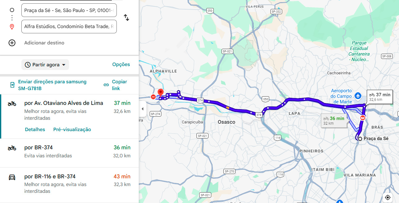 Atualmente para chegar a Alfra Estúdios, com partida da Estação da Sé, você pode: